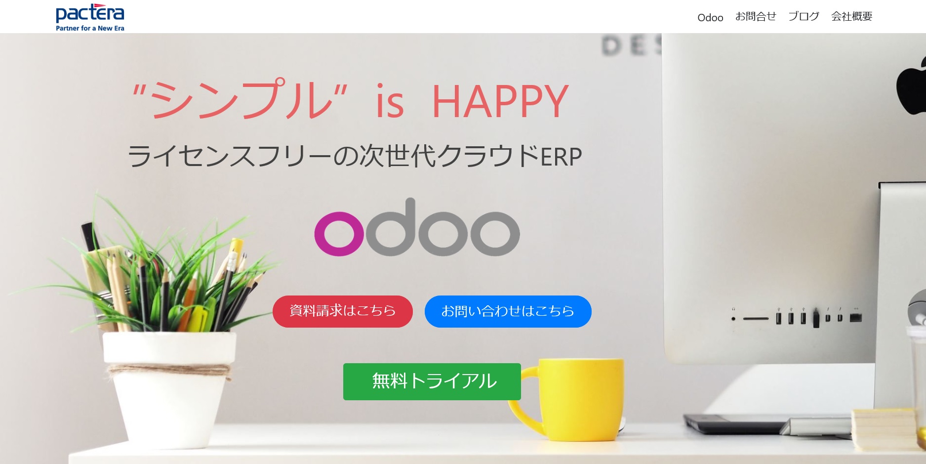 サービス開始に伴い特設サイトをオープンしました。Odooの製品概要やパクテラでのサポート内容について紹介しています。ぜひご覧ください。